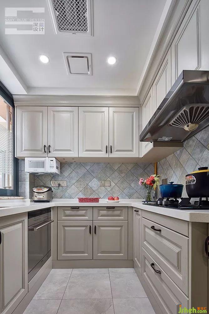 U形廚房的洗切炒三大區(qū)域完美形成三角動(dòng)線,利用好每一寸空間價(jià)值。米色櫥柜給人耳目一新的清爽感受,讓烹飪變成一件溫暖而治愈的事。