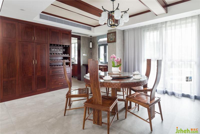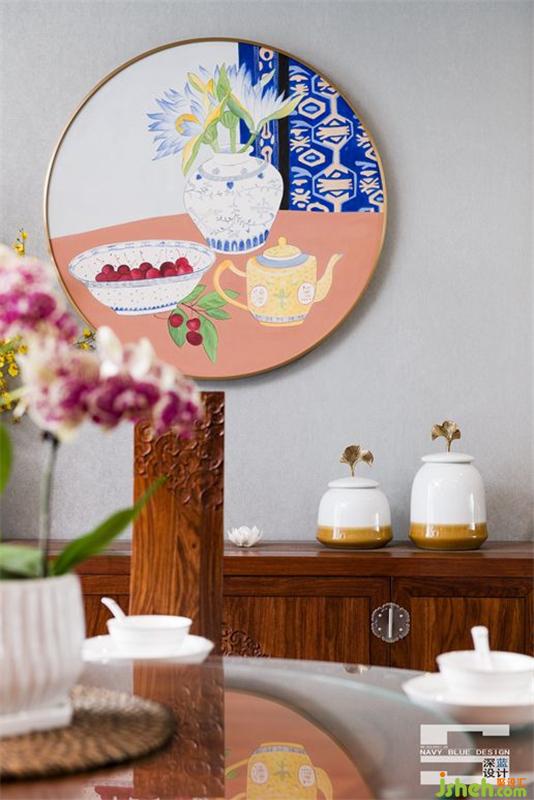 在選材上,運用了中式的材質(zhì)和手法,把中式的古色古香表現(xiàn)得淋漓盡致,卻又不失新潮。深棕木色的新中式配套沙發(fā),融合墻上春意盎然的山水畫、明黃色花瓶,摒棄一切浮夸的裝飾,還原東方的古韻氣息。