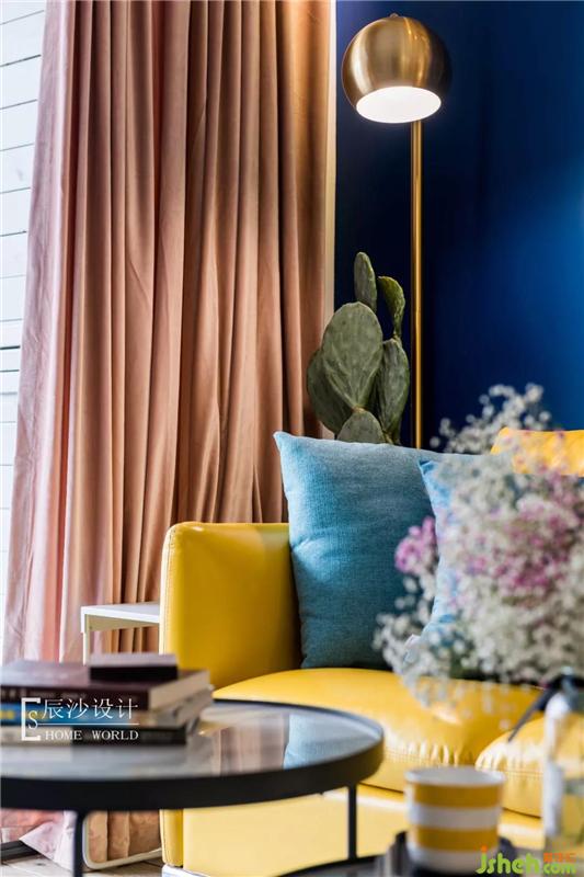 業(yè)主喜歡空間開(kāi)闊,把原來(lái)狹小的廚房空間改成了開(kāi)放式,同時(shí)做了一個(gè)大儲(chǔ)物柜放冰箱和洗衣機(jī)??蛷d選用了藍(lán)色和黃色的撞色來(lái)提亮空間,在單椅的選擇上,選擇了一個(gè)格子的作為跳色。主臥選用了一個(gè)水泥質(zhì)感的衣柜,偏工業(yè)風(fēng),更符合業(yè)主的喜好。