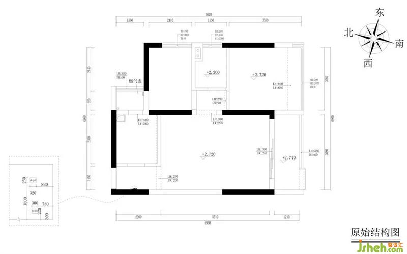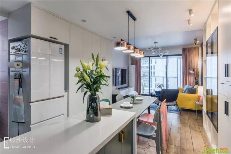 設(shè)計(jì)師將原戶型的玄關(guān)和廚房打通,增加廚房的使用面積,使整個(gè)空間更加開(kāi)闊。室內(nèi)設(shè)計(jì)師