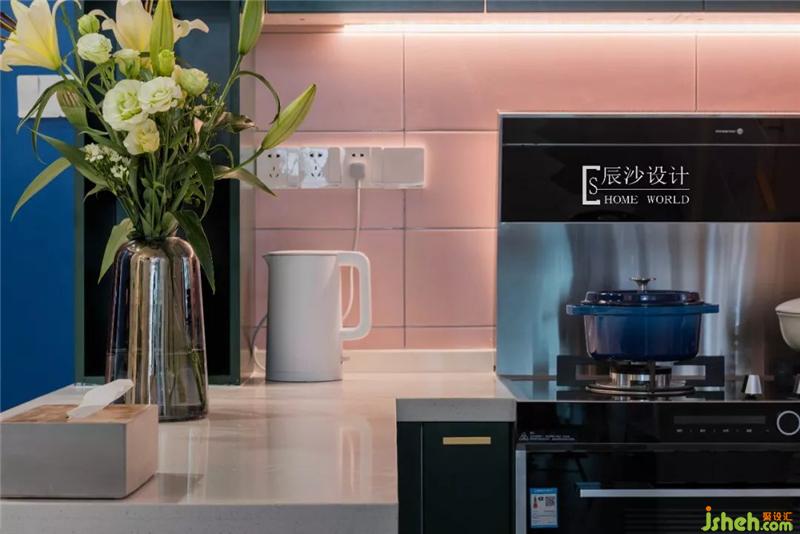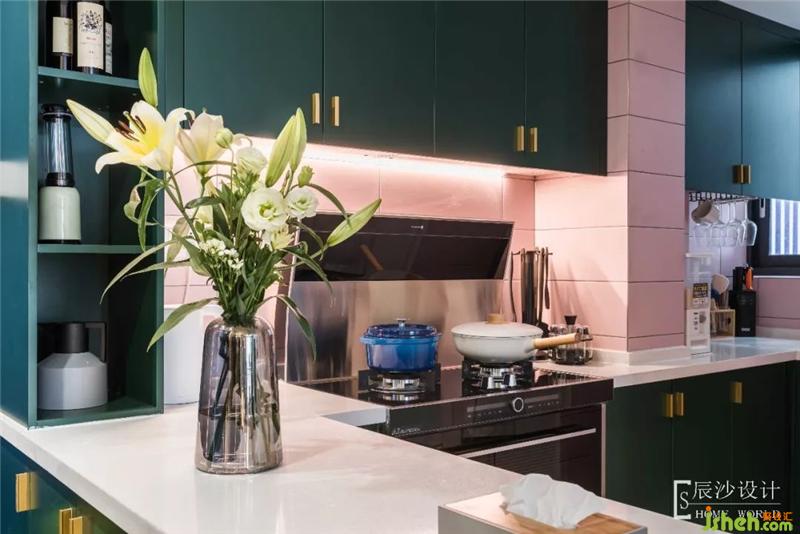 粉色與綠色結(jié)合的廚房,讓你在做飯的時(shí)候隨時(shí)感受到草的清香與花的甜膩,既滿足心中向往的那份浪漫的少女情懷,又能使整個(gè)空間變得浪漫舒緩、靈動(dòng)自然。室內(nèi)設(shè)計(jì)師