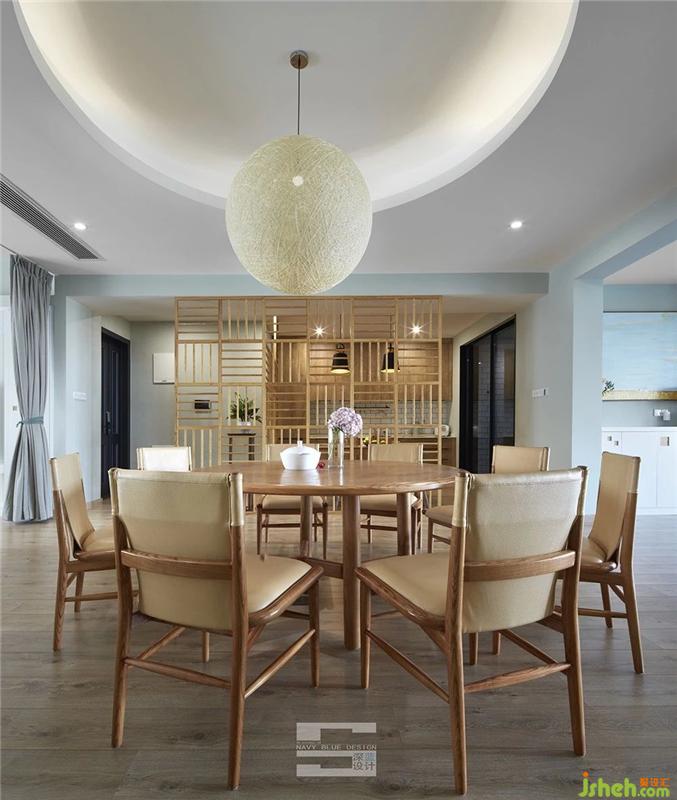 餐廳與西廚相銜區(qū)域格柵屏風(fēng)的設(shè)計,使兩個空間互相獨立又互相接連,從美學(xué)和功能的角度釋放空間潛力,打造耐人尋味的氛圍寫照。