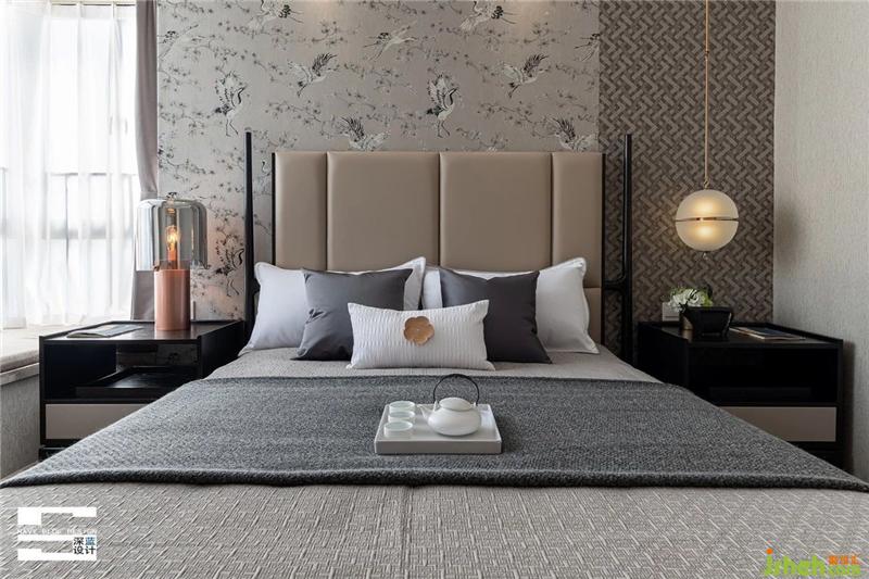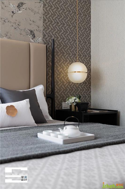 兩盞造型獨特的床頭燈,極富藝術腔調(diào);富有生氣的床頭背景墻,跳動的紋理,空間祥和安穩(wěn)的同時不乏靈動之感。室內(nèi)設計師