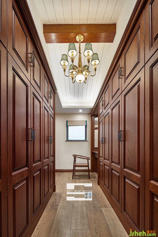 衣帽間:衣帽間在桌子處的收納,設(shè)計(jì)的可謂是別有用心,一開一合間不僅滿足了小樣物品的收納,鏡面處還能滿足裝束的需求。兩邊一整面的衣柜充分保證了業(yè)主收納需求,也不會(huì)產(chǎn)生任何壓迫感。