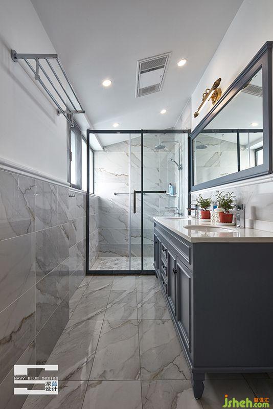 衛(wèi)生間:衛(wèi)生間的自然光照非常的充足,襯托淺色背景里的空間更干凈整潔。用金色的燈管做裝飾,簡(jiǎn)單也有不俗之處。