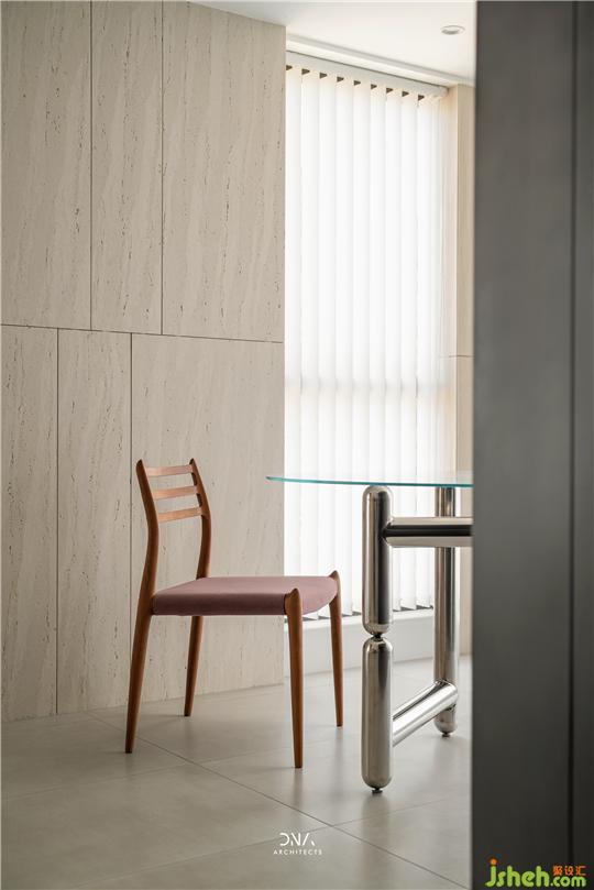 該項目是設(shè)計師為自己設(shè)計的居所,房屋西面臨江環(huán)山,景色悠然。為了更好地襯托外界環(huán)境,室內(nèi)空間的材質(zhì)和色彩都運用得十分克制,現(xiàn)代設(shè)計以混凝土、洞石、樺木這些極具親和力的材質(zhì)裝點,營造”自在、恰當(dāng)“的氛圍。這不僅僅是一種設(shè)計手段,更多是設(shè)計師理想生活的一種縮影。