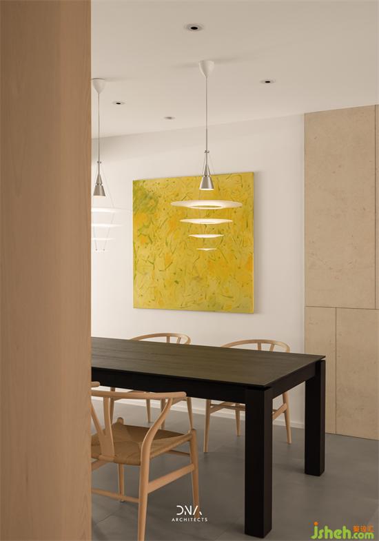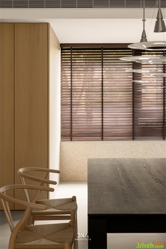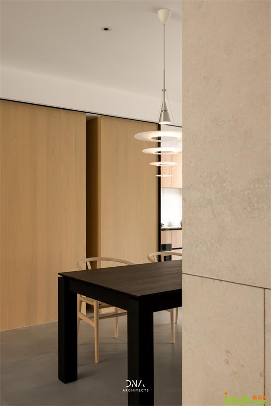 餐廳吊燈是來自Louis poulsen的Enigma 425,它通過不同大小的環(huán)狀,將光源逐步遞進(jìn)到桌面,呈現(xiàn)出柔美的間接照明,其舊房改造設(shè)計師內(nèi)山昭一一直致力于創(chuàng)造無眩光的間接照明燈具,讓物體變得美麗,讓人們感受舊房改造到物體的質(zhì)感和深度。