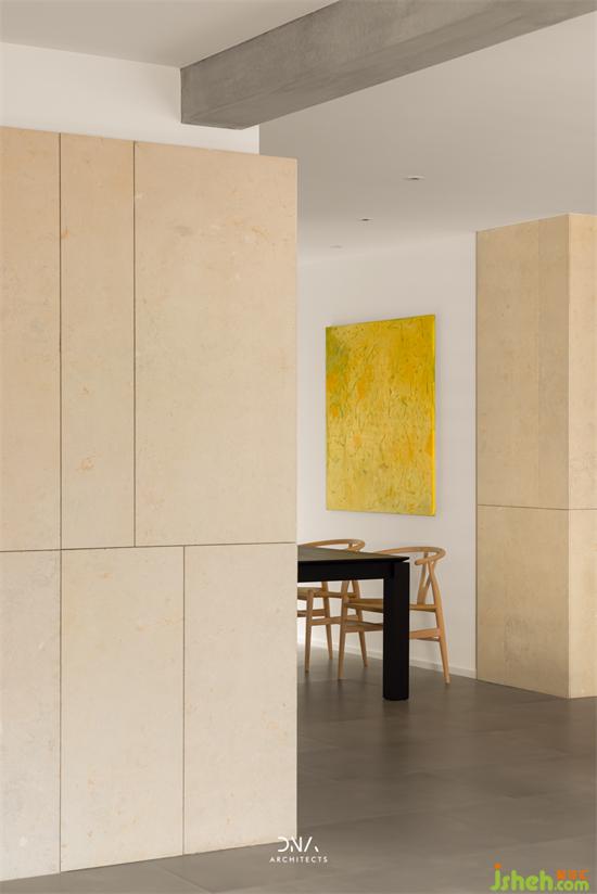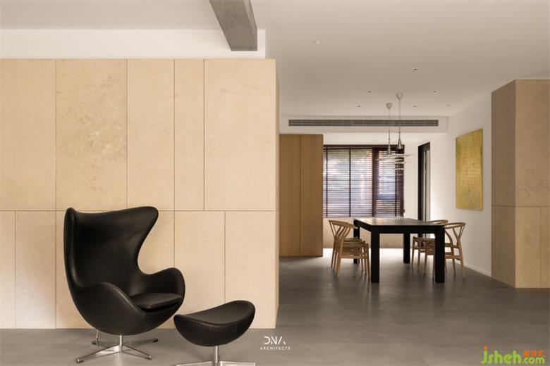石材和木材的輪廓線有序地遞進(jìn),舊房改造緩解視覺上的疲勞感。