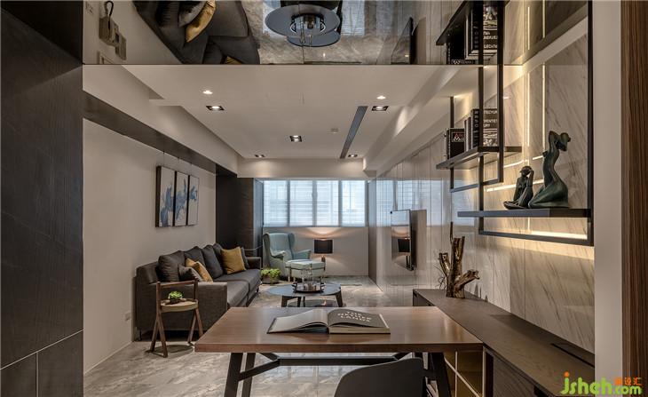 大門區(qū)域:原有建筑結(jié)構(gòu)大梁橫跨在餐桌上,這個(gè)房屋缺點(diǎn),我們采用特殊金屬鏡透過視覺反射的手法淡化,將壓梁的視覺感淡化。室內(nèi)設(shè)計(jì)師