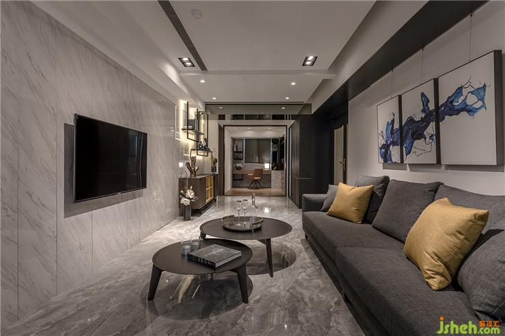 狹長的客廳格局,透過電視墻面分割比例與淺色天然大理石的質(zhì)感呈現(xiàn)出屬于豪宅的尺度與氣場。室內(nèi)設(shè)計(jì)師