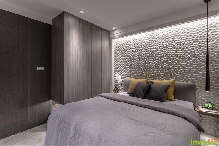主臥室床頭特殊建材的發(fā)想:男主人喜歡浮潛,鈦藝團(tuán)隊(duì)將珊瑚礁的意象置入,讓客戶彷彿沉浸在海洋中。室內(nèi)設(shè)計(jì)師