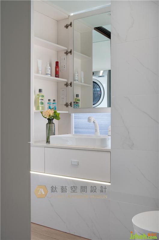 窗,留住光影虛實(shí)的痕跡,讓空間擁有不同層次的表現(xiàn),回應(yīng)使用者對(duì)于空間完美使用的渴望,衛(wèi)生間飄窗原只是作為簡(jiǎn)單的物件盛放處,經(jīng)過(guò)巧妙的變思后實(shí)現(xiàn)華麗變身,素凈的白色鏡柜與簡(jiǎn)雅而高品質(zhì)的潔具一體化設(shè)計(jì),大大節(jié)省了空間,增強(qiáng)了收納功能的同時(shí)鏡柜的設(shè)計(jì)還保留原有空間采光及窗外美景。裝修設(shè)計(jì)