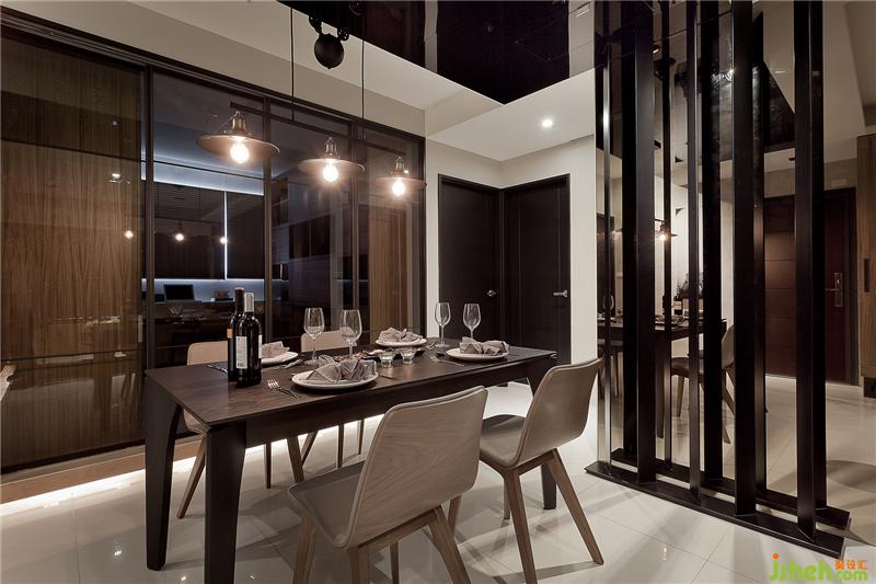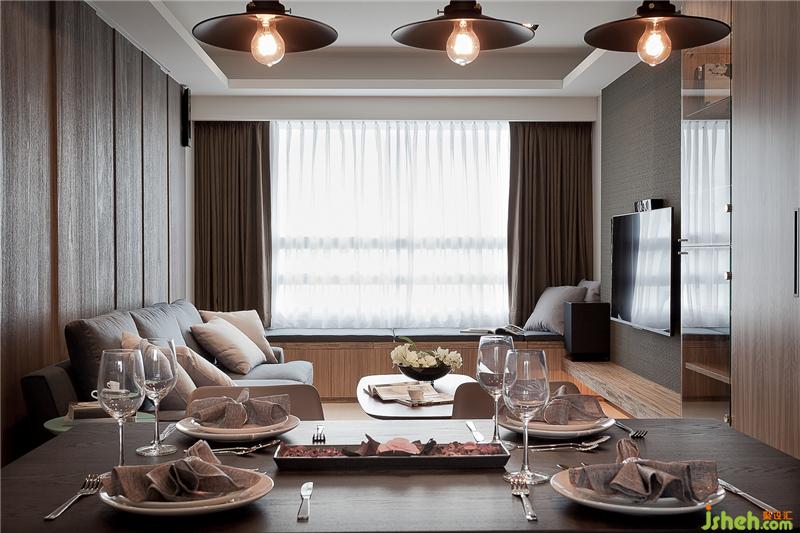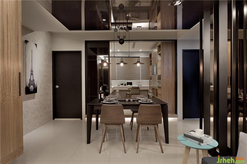 采黑玻推拉門半穿透規(guī)劃的書房,是設計師為習慣閱讀的屋主夫婦,量身規(guī)劃的專屬空間,L 形轉(zhuǎn)折的白橡木桌面可容納兩人同時使用,線條持續(xù)向后延伸作為高柜的抽屜使用,在滿足收納量的同時,亦透過色彩變化消弭柜體造成的壓迫感。有別于深色木皮打造的公共空間,主臥房中采白橡木皮營造空間輕盈感,除了床側(cè)的落地景觀窗外,床頭后方的室內(nèi)、室外機維修窗,則以雙片滑門隱藏修飾,保有維修調(diào)整的使用彈性。