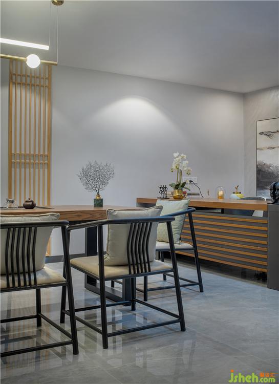 設(shè)計(jì)師在空間形態(tài)、構(gòu)成及功能布局上作出了新的實(shí)踐,半透明的磨砂玻璃加上輕薄的線條隱匿其中,給予室內(nèi)外半遮擋效果,充溢著理性和智慧。方正形態(tài)遵循有序的設(shè)計(jì)法則,讓整個(gè)空有了延長性、藝術(shù)性。在剛性需求及設(shè)計(jì)的現(xiàn)代元素運(yùn)用上,做了更深層次的延伸,兩側(cè)玻璃門依次排開,更好地增加了光亮度。