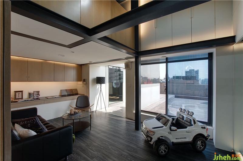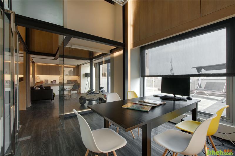 本案為建筑頂層的一個(gè)辦公空間,面積雖小,但勝在層高空間還是比較足夠的,而面對希望擁有較多空間的業(yè)主,如何才能滿足業(yè)主的同時(shí),讓空間不會(huì)有擁擠感,顯然這對于設(shè)計(jì)總監(jiān) 陳逸群、鐘馥如 來說,并不是什么困難的事情。