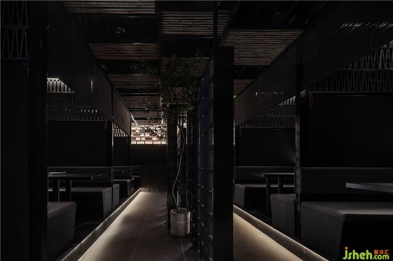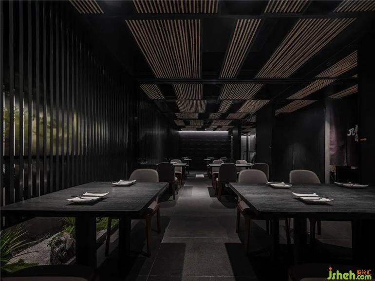 黑色,獨(dú)立專注,是生命中的純粹之色,經(jīng)久不衰而歷久彌新,低調(diào)卻又盡顯鋒芒。猶如潤(rùn)物細(xì)無(wú)聲的日料手法,執(zhí)著專注,極凈內(nèi)斂,嚴(yán)謹(jǐn)而細(xì)致。設(shè)計(jì)將食材、烹飪、氣氛蘊(yùn)藏在濃郁的清酒文化韻味中,在柔和而有層次的輔助光源下,讓食客享受美味的光與色。