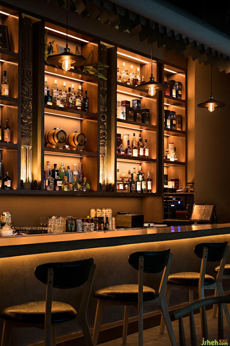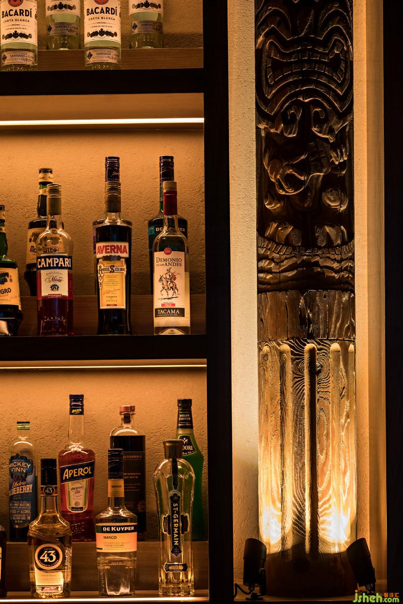 The location of the bar uses totem method, which makes the whole space have a strong cultural atmosphere of tropical style.