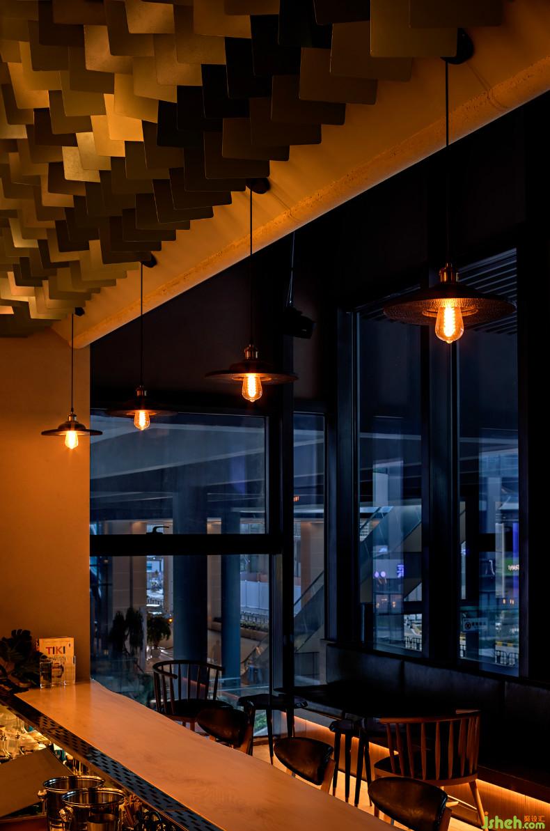 吧臺位置使用了圖騰做法,使整個空間具有一股濃濃的熱帶風(fēng)格的文化氣息。