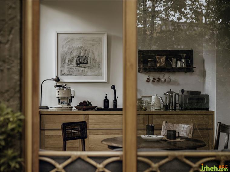 After entering the lobby from the narrow staircase, you will focus on the paintings and green plants. The hallway is suddenly spacious, and the connecting courtyard, staircase, and living room extend the natural and comfortable experience to the outside. The slow rhythm, light and shadow on the handmade floor tiles, furniture, books, and music jointly produce a tranquil, gentle atmosphere. The furniture is placed at will to guarantee comfortable uses. As a result, anyone can stop and get a chair to get fully relaxed.