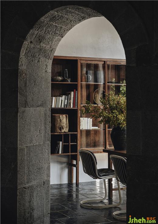 “空間空了,干凈了,樸素了,人就可以更多地感受風(fēng)景、觀照內(nèi)心?!苯?jīng)由一道藏身曲徑后的木門,雙廊特有的肌理粗糙的青石拱門和壁爐從大堂映入眼簾,成為自然自在的“展品”,同時鐫刻著屬于“粉四”的時光印記。古典樂的旋律與暗色的家具合奏,墻上是法國藝術(shù)家的畫作和攝影家駱丹的《怒江》系列攝影作品。夕上雙廊酒店設(shè)計灰色調(diào)在大理充足的陽光下,讓每位置身其間的客人都浸潤于一種素樸莊重的寧靜中。側(cè)轉(zhuǎn)至空間的中軸,洱海在夾道樹木的迎接下闖入視線,奔涌至生活。