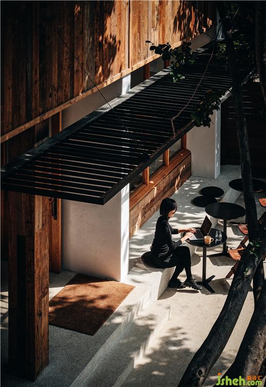 外面是熱鬧的雙廊主街,前院是鮮花簇?fù)淼牟蛷d與酒吧。白墻、舊木、手工瓷磚、干凈的水洗石,這些組成“謝柯”的元素將八旬時代的倉庫和店鋪包裹,構(gòu)成了整個空間情境的織體。東西朝向的院子里,陽光四時變換流連,夕上雙廊酒店設(shè)計使賓至如歸,自由且燦爛。這是謝柯屢次在現(xiàn)場感受、追逐光的蹤跡,然后記錄下來,從而讓光在空間里舞蹈的結(jié)果。
