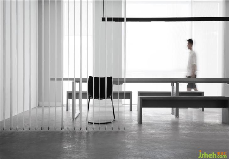 通過材質(zhì)的關(guān)聯(lián),天花與地面的分割。打破空間的一致性,天花保留了原建筑的鋼筋結(jié)構(gòu),看似孤立的元素卻無心成了最躁動的存在。通過原始的粗獷與細(xì)膩的形態(tài)構(gòu)成,整個空間看上去都是自由的表達(dá)。既對立而又協(xié)調(diào)。