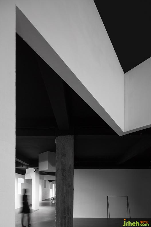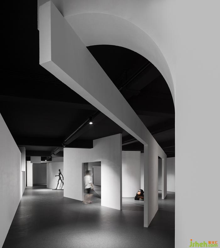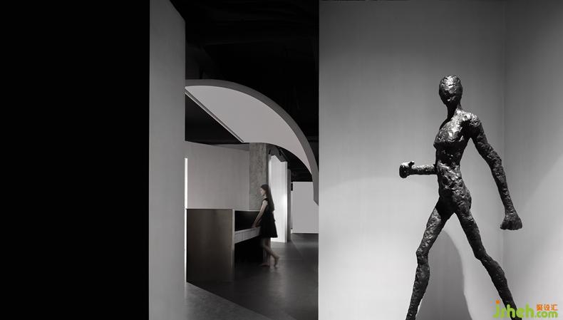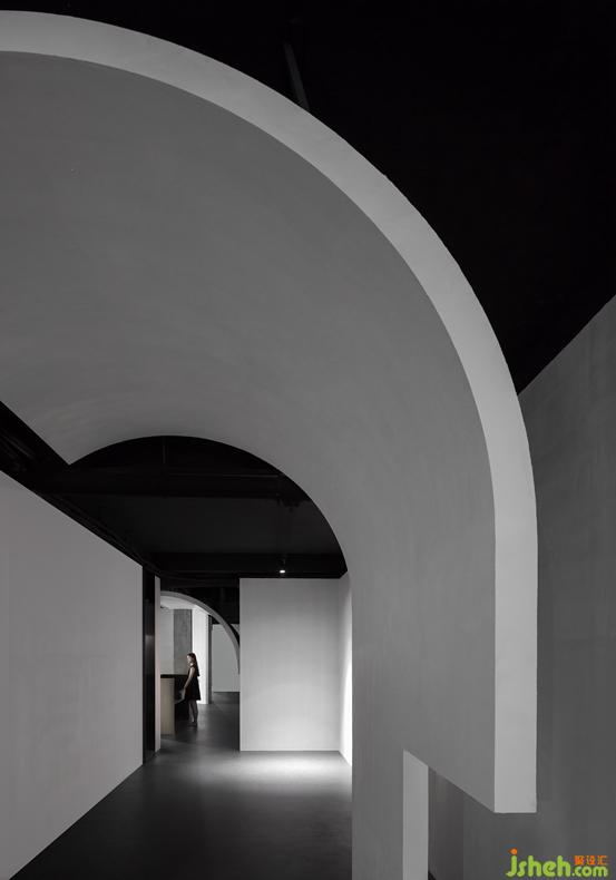 通過對(duì)形體體量細(xì)化,多變的幾何形體既作為空間分割又獨(dú)立于空間中。圓弧形體,使充滿張力的空間增強(qiáng)了趣味,缺失的洞口,既暗示著每一個(gè)未知空間的開始,又使空間相互滲透。傾斜的墻體,指向未知的邊緣。