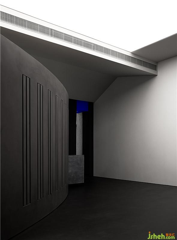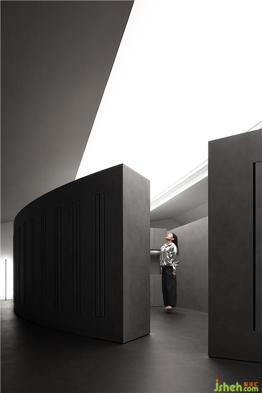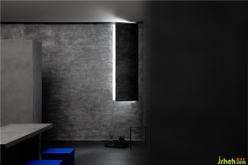 光是表現(xiàn)空間情緒的重要介質(zhì),光影互相依存,空間中大面積大拉膜,強(qiáng)調(diào)光線的柔美均衡,一方面感好的服務(wù)于空間中產(chǎn)品的照明,在情感上弱化了影的存在,營造一種戲劇化的安靜,局部強(qiáng)化光影,表現(xiàn)材料質(zhì)感的同時感受空間的躁動,一種壓抑著的力量準(zhǔn)備爆發(fā)。