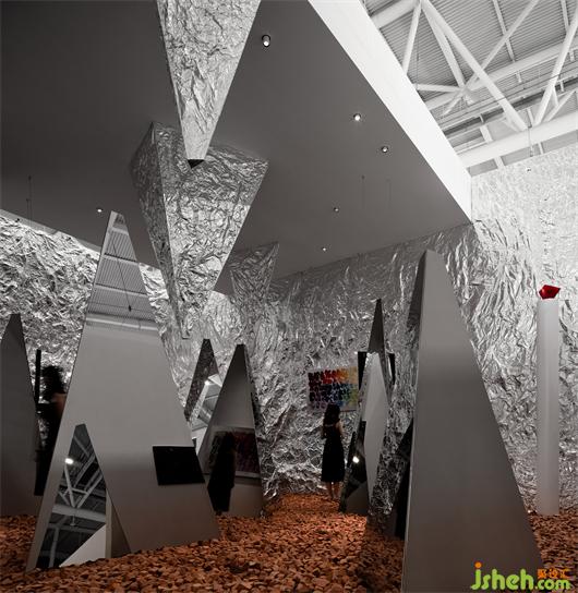 展覽設(shè)計考慮到觀展的人流密集,設(shè)計通過三角形來分割空間,創(chuàng)造一個擁有自由度的同時擁有方向性的情景,其目的是更好的讓看展覽的人更好流動起來,讓本該固定的觀展流線變得自由并且節(jié)奏豐富。