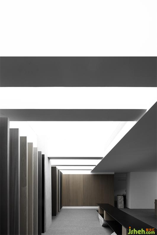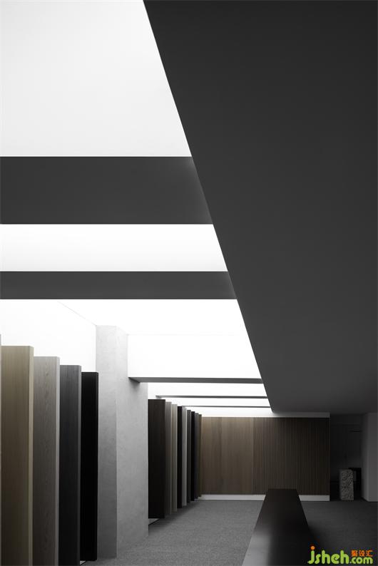 集恩在潮汕經過5年的沉淀,與潮汕地區(qū)設計師已經有了互動的基礎,同時也讓市場對梵品木飾面有了一定程度的認知,艾克建筑認為這并不是一個開辟新市場的行為,而是如何穩(wěn)固市場與讓市場進行裂變的行為。展廳設計中并不是要體現(xiàn)木飾面本身,主要的是要讓市場知道集恩能做什么,一個從賣產品到定制與項目執(zhí)行的行為差異,這是在展廳的設計中最重要的環(huán)節(jié)。