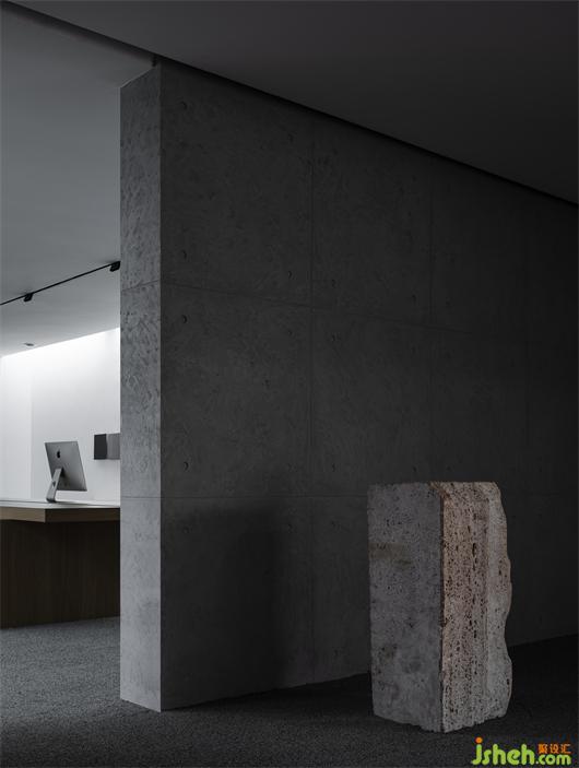 No front desk is set at the reception foyer. This is a bold attempt, which is based on the consideration of the changing ways of payment recently. Conventional front desk is replaced by a piece of stone, which welcomes visitors in a low-profile posture.