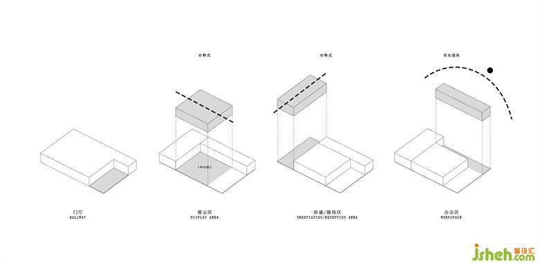 天花中的形體人為的制造了自然的天光,這樣的光是一個最舒適的狀態(tài),同時也是最真實的反映產品本身的狀態(tài),充分解讀了產品/光與空間的關系,讓人產生直接與真誠的態(tài)度。