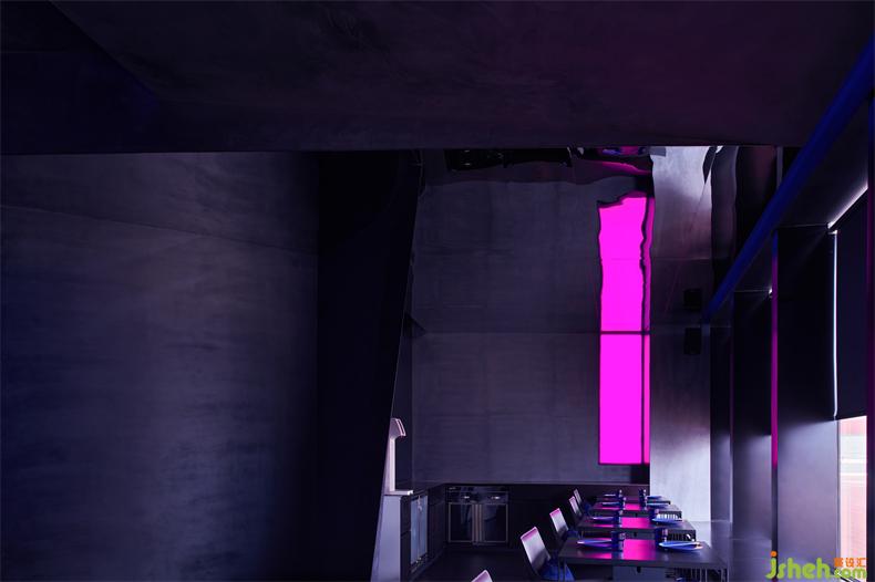 大董餐飲子品牌,小大董是大董理念的延伸,表現(xiàn)大董性格中更輕松的一面。藝術(shù)餐廳設(shè)計(jì)初衷是從情感上刺激體驗(yàn)共鳴出發(fā),以喚醒情緒或想法,其目的是為了激發(fā)社交場所下,體驗(yàn)者的情緒,而此種情緒亦是表達(dá)品牌基因新潮時(shí)尚,迷幻冷調(diào)的感知的結(jié)果。試圖表達(dá)空間中情感體驗(yàn)的真實(shí)意義,而不是物理現(xiàn)實(shí)。