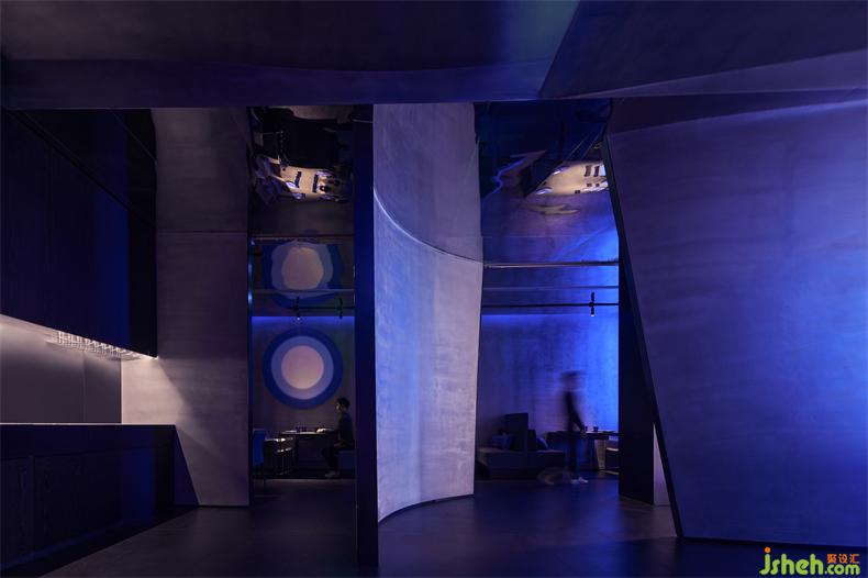 藝術(shù)餐廳設(shè)計(jì)基于品牌文化基因傳達(dá)的深層考慮,探索子品牌小大董的定位及客群與社交狀態(tài)的一種變化。年輕、時(shí)尚、新潮藍(lán)調(diào),擁有無限活力;而浪漫的想象力與創(chuàng)造力,猶如Rhapsody狂想曲,潛伏著不可名狀的感覺,響起的bgm隨著緊密契合的鼓點(diǎn)與迷幻藍(lán)調(diào)的“小大董”再合適不過。迷幻沖撞的顏色本質(zhì)上是虛空清透的光影,實(shí)質(zhì)是品牌的印象基調(diào)。