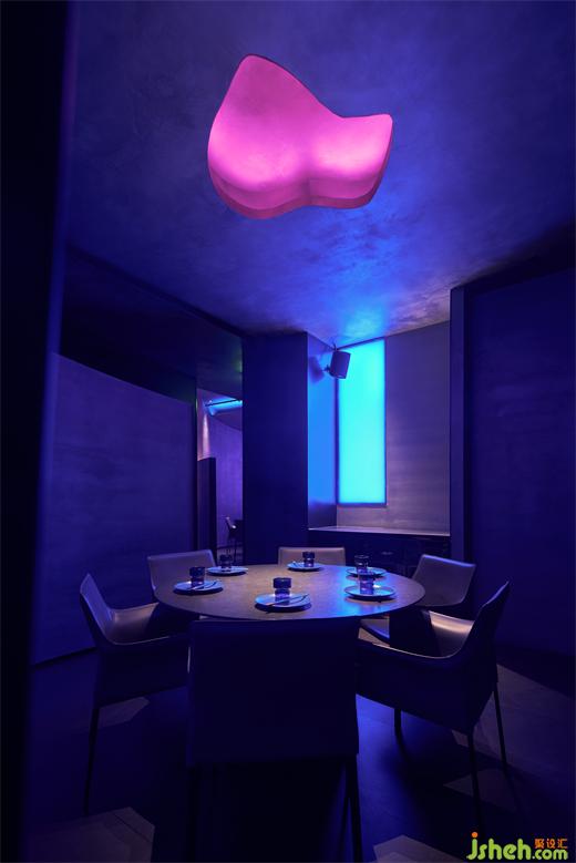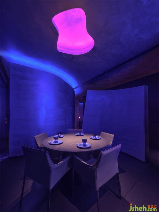 The thinking of the bar area's spatial form provided important guidance to design creation. It features young power, stylish atmosphere, and gives a delicate and soft feeling. The design considers contingency and accidentality, and meanwhile incorporates anti-tradition modernist spirit. Cool, dreamy hues and fluidity were fully considered throughout the design process. After deep thinking and analysis, spatial expressions were worked out.