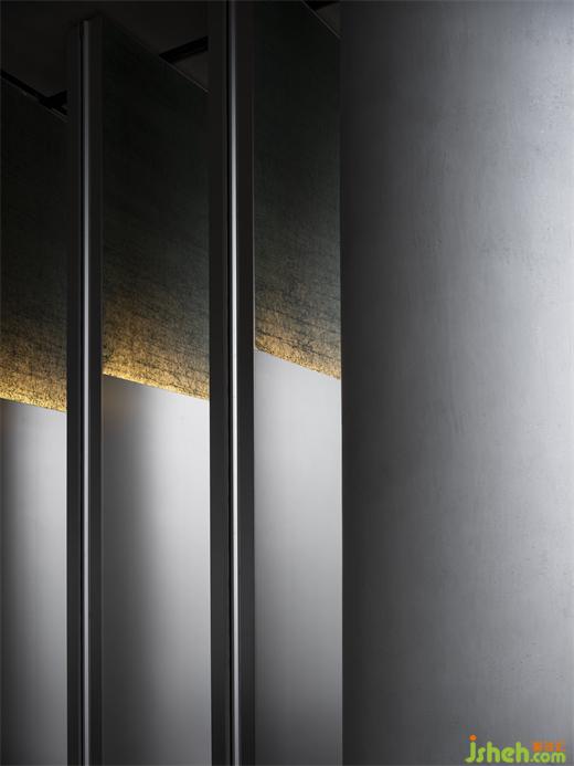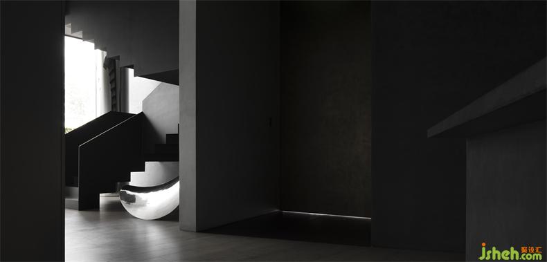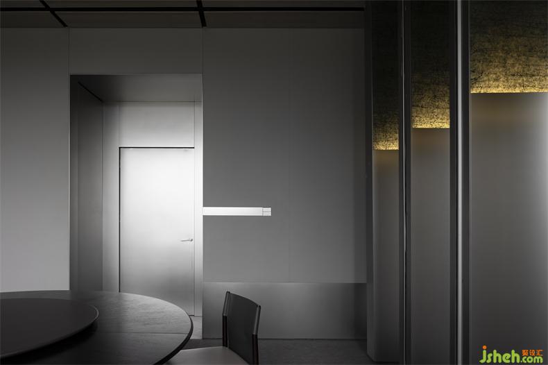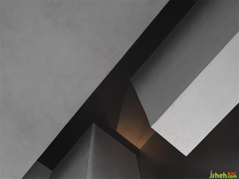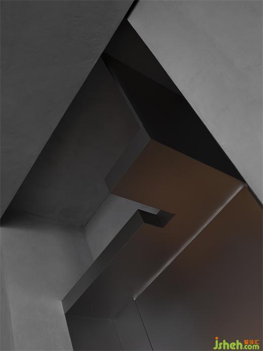 The designers experimented with the forms of expressing handmade paint. The team mixed metal grains with grey decorative paint, which unexpectedly produced a concrete-like plain texture and also a glorious visual effect. The wooden floor contrasts with the metal materials in a way that achieves the unity of softness and hardness. Cold and warm colors are alternated not only to induce the harmony of coolness and warmness, but also to integrate more elements such as temptation, humor and mystery into the space.