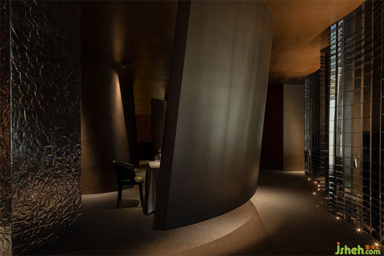 不銹鋼的弧形屏風(fēng),有效的將更具私密性的包房分割出來,餐廳設(shè)計同時視覺的可視性更好的提供了服務(wù)的時效性,可以在不影響客人的情況下安排用餐的速度,制造細(xì)膩的服務(wù)體系。