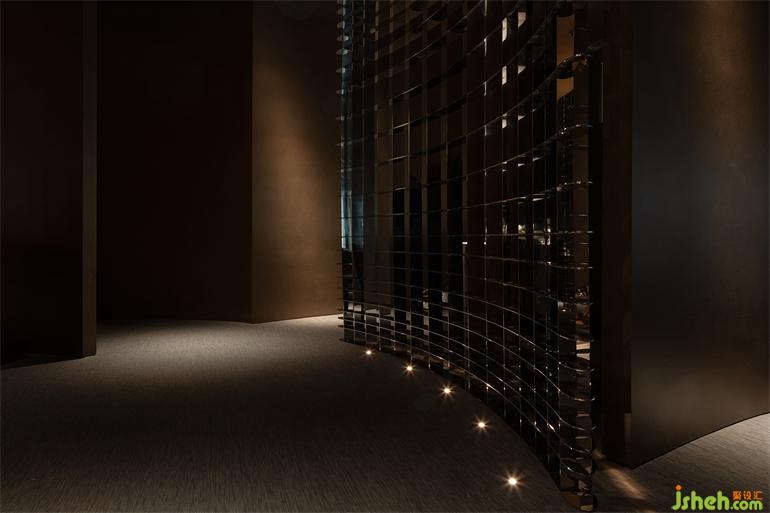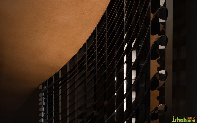 At the middle of the space erects a huge steel column made of hand-made wrinkled aluminum featuring wrinkles, which soften the column visually and make it appear more flexible and elegant, hence becoming a visual highlight in the space.