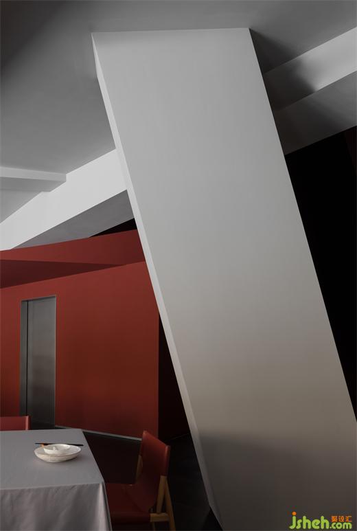 室內(nèi)柱廊數(shù)組排布廊道,通透彰顯,深圳餐廳設計除了滿足用餐功能之外,載體平和的氛圍在紅韻中裂變而出,在室外形成強烈的幾何秩序感,分布的天花燈箱根據(jù)幾何變換來強調(diào)空間的解構性,這是一種整合幾何構體的張力??臻g大量運用紅色烤漆、原木色系與質樸的青磚,現(xiàn)代與傳統(tǒng)元素的碰撞、歲月沉淀與新生裂變碰撞的韻味油然而生。