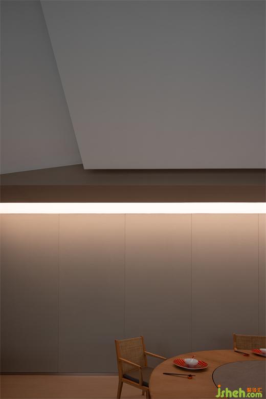 二樓進(jìn)入我們視野的是前臺(tái)接待與水吧功能結(jié)合的多功能服務(wù)區(qū),深圳餐廳設(shè)計(jì)開放式的露臺(tái)坐擁人間煙火,吧臺(tái)頂部用當(dāng)代的幾何造型與手工編制的家具及戶外家居編織質(zhì)感的手藝進(jìn)行碰撞,幾何符號(hào)圍合出了讓人具有探索欲望的空間情境。笑看清淺流年,曲徑通幽,張揚(yáng)且含蓄,一場東西方美學(xué)與哲學(xué)的碰撞。