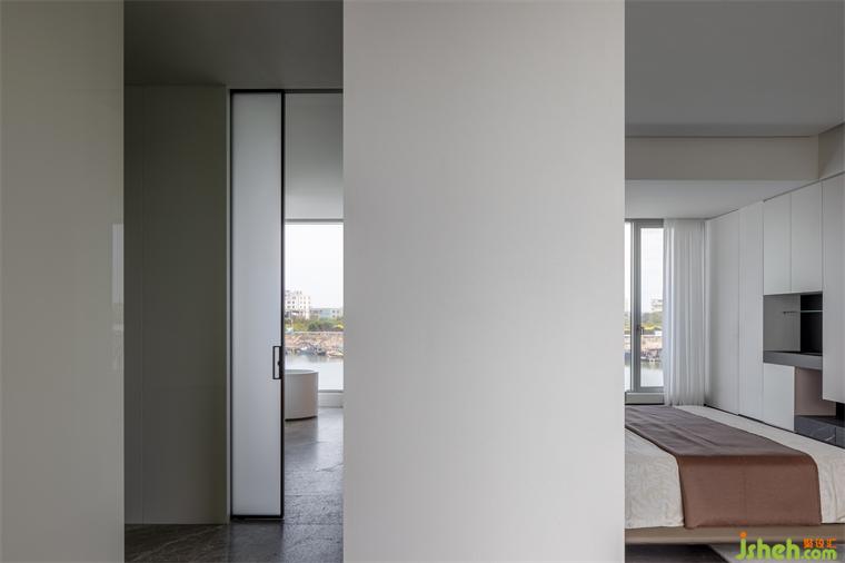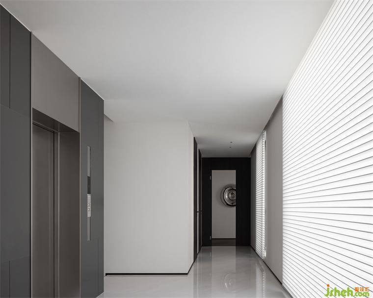 樓梯,是貫通整體空間的功能動線,也是開放外向至私密內(nèi)向的情緒轉(zhuǎn)換。極簡豪宅設(shè)計以一層的客廳作為空間的中心,由上的兩個樓梯貫通作為二三層的起居空間,至下的樓梯由客廳直接連接負一層的接待空間。凈白的植入,讓一個建筑空間中的起居與接待關(guān)系,無聲而純粹。