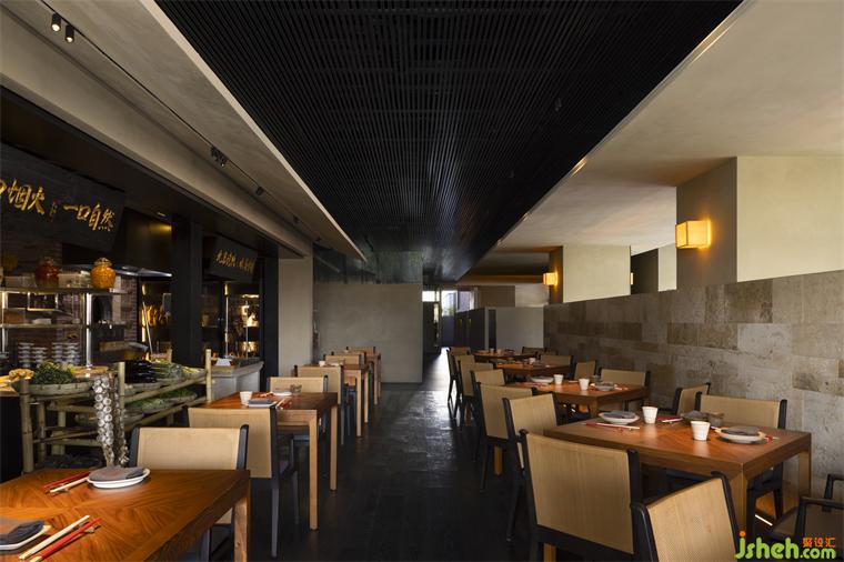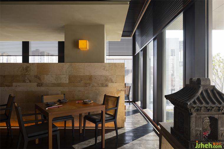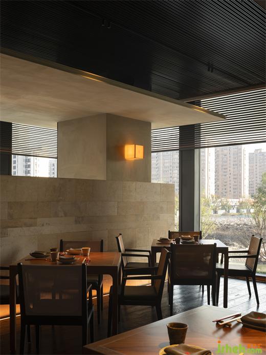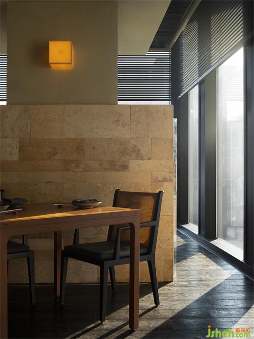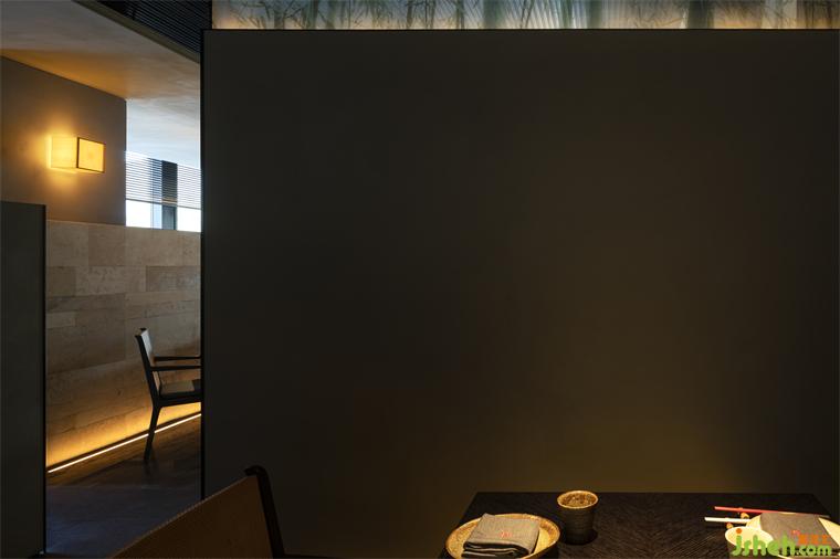 廊道的轉(zhuǎn)折關(guān)系,移步異景,竹子的元素通過玻璃進(jìn)行延伸,餐廳設(shè)計(jì)讓用餐的主體空間隱藏于空間內(nèi)部,遠(yuǎn)處的餐廳氛圍讓人產(chǎn)生更加強(qiáng)烈的求知愿望,狹小的廊道讓空間產(chǎn)生強(qiáng)烈的神秘色彩,以小見大的空間邏輯,讓空間的窺探感感覺強(qiáng)烈,一種不經(jīng)意的設(shè)計(jì)邏輯在空間中不斷的強(qiáng)調(diào)與重復(fù),形成了一種隱晦的空間語境。