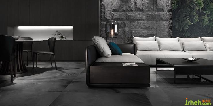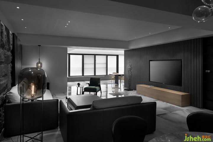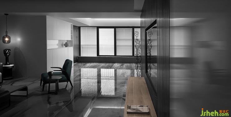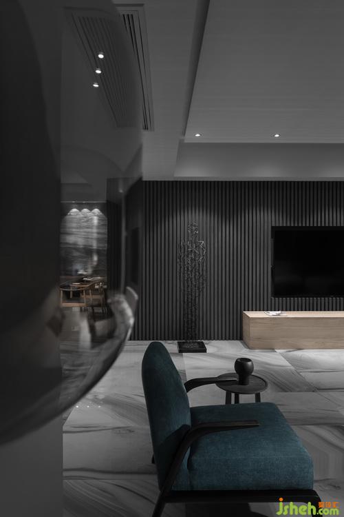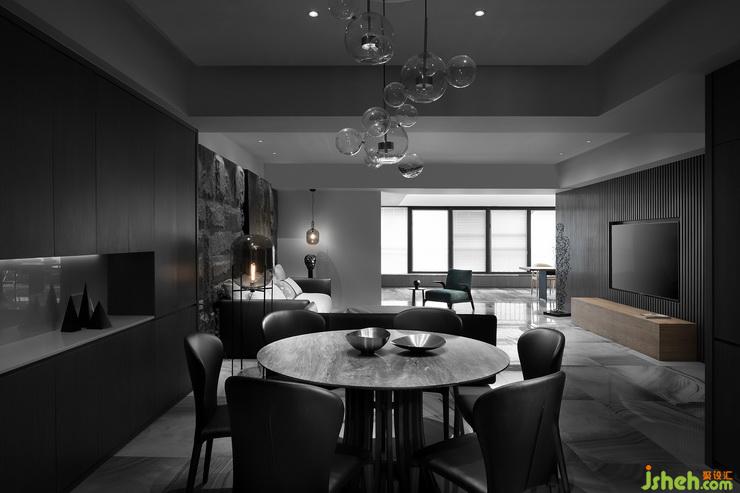 黑色貫穿了各個(gè)生活空間,沉靜、含蓄地氛圍能撫平心中的焦慮,讓人慢下來去審視內(nèi)心。黑色具有神秘魅力,暗藏內(nèi)在力量,賦予人探索未知的勇氣。黑色的墻壁端莊、典雅,猶如舞臺(tái)的室內(nèi)背景。