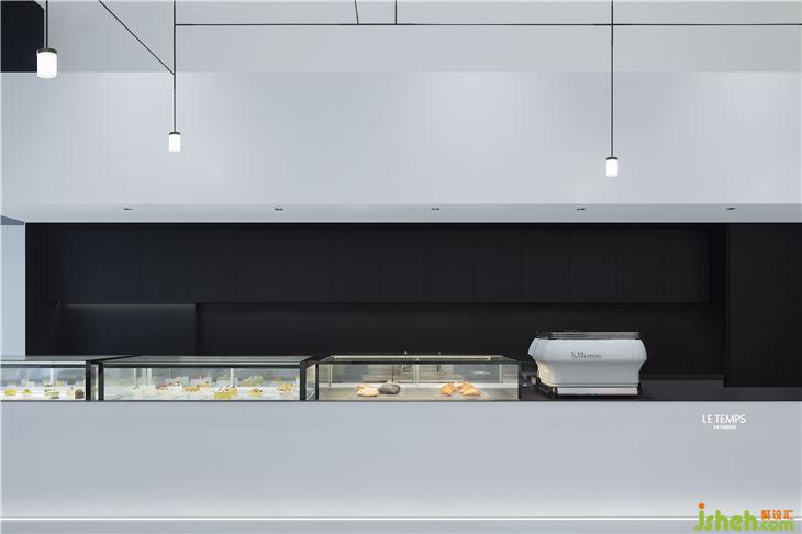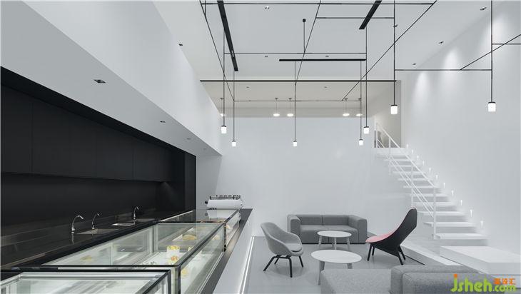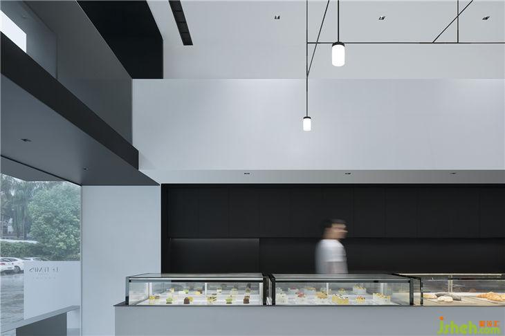 同時(shí),主人與設(shè)計(jì)師一致認(rèn)為設(shè)計(jì)應(yīng)當(dāng)有主次之分,凝練的黑白灰不與產(chǎn)品爭(zhēng)寵,起到一個(gè)輔助的作用,以低調(diào)的姿態(tài)烘托產(chǎn)品,使得人們把視覺(jué)的焦點(diǎn)集中在甜品上。鋪?zhàn)诱嬲龅郊炔恍e奪主,同時(shí)保持該有的熠熠生輝,讓品牌理念得以體現(xiàn)并流傳不敗。
