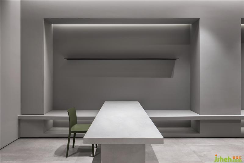 “我們創(chuàng)造性地引入‘內(nèi)建筑’思維,整合商業(yè)展廳的場景感體驗,依循動線變化來演繹界面的穿插、疊加、重合、分割,奏響極具視覺沖擊力的色彩音符,為品牌完成空間的藝術化表達。”展廳設計