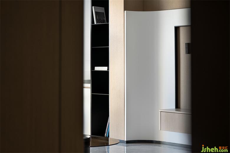 The blend of colors creates a unique space rhythm in the simple shape. The suspended TV cabinet and the background wall with great aesthetic temperament describe the vivid natural interest. The wood veneer and the white wall panel are spliced together, and the interface is softened with a delicate arc, guiding the line of sight to a more comfortable perception dimension.