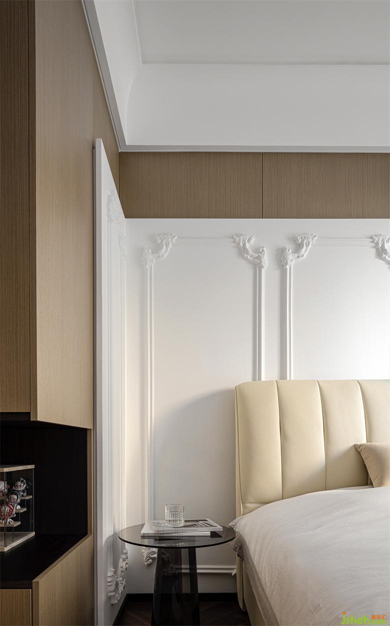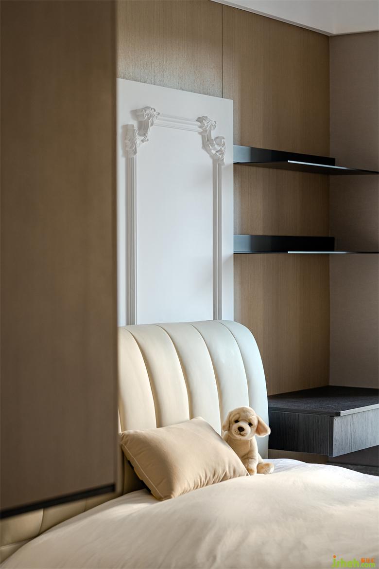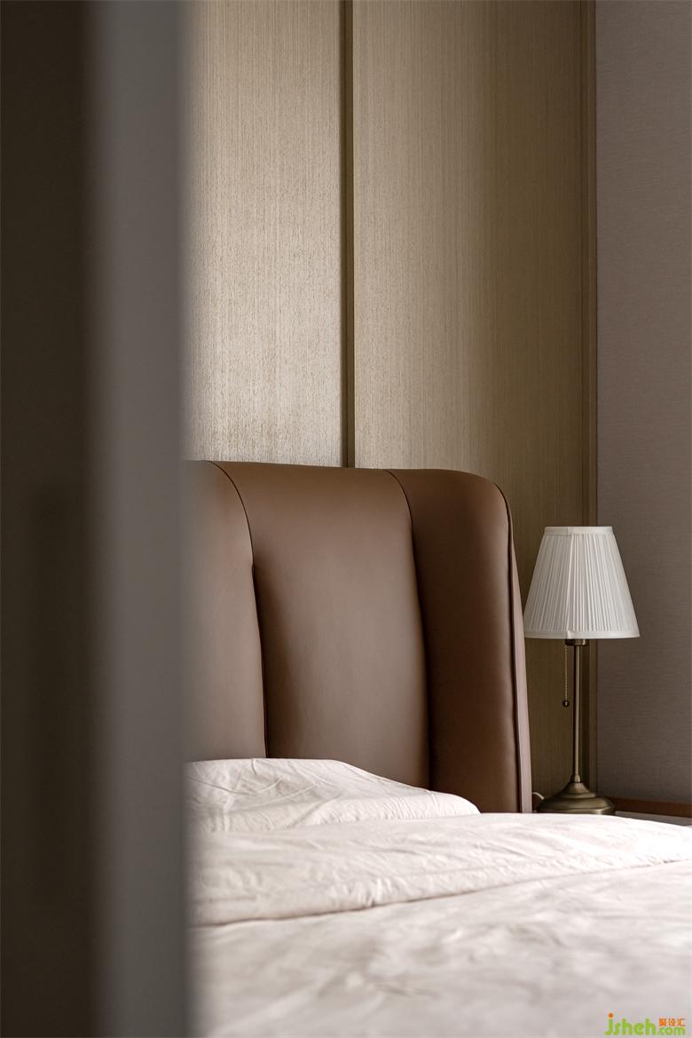 木飾板與深棕色的床頭用線條書(shū)寫(xiě)出溫婉和諧的氣質(zhì),極富韻律,給人以松弛平靜的空間感受。室內(nèi)設(shè)計(jì)師典雅的色彩輕盈地包裹著柔軟的生活,讓人的心靈回歸于心靈安謐的深處。