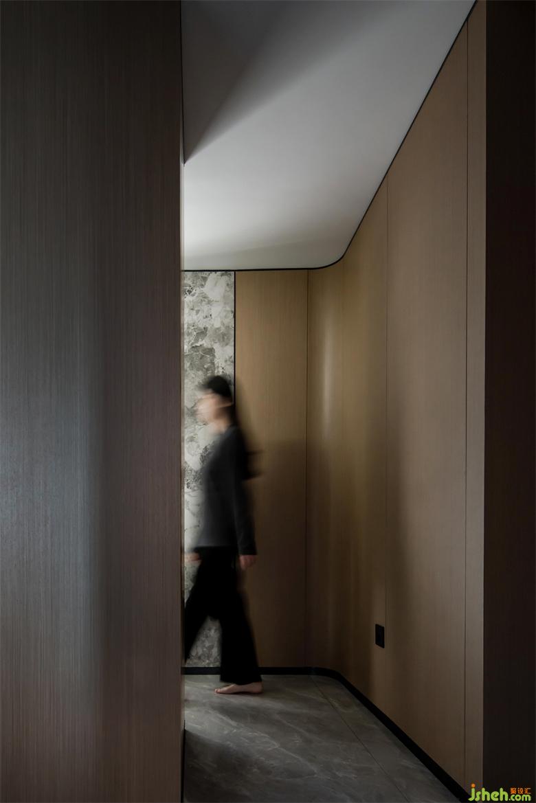 原木與巖板的交替使用,避免了空間感受的單一,室內(nèi)設(shè)計(jì)師在巖板的堅(jiān)硬感與原木色彩的溫潤(rùn)氣質(zhì)中繁復(fù)交迭,形成了極為豐富的空間層次。拐角的弧度巧妙地柔化著空間轉(zhuǎn)折的硬朗感,讓生活的每一個(gè)角落,都縈繞著舒適、自然、溫暖、和諧的氣息。