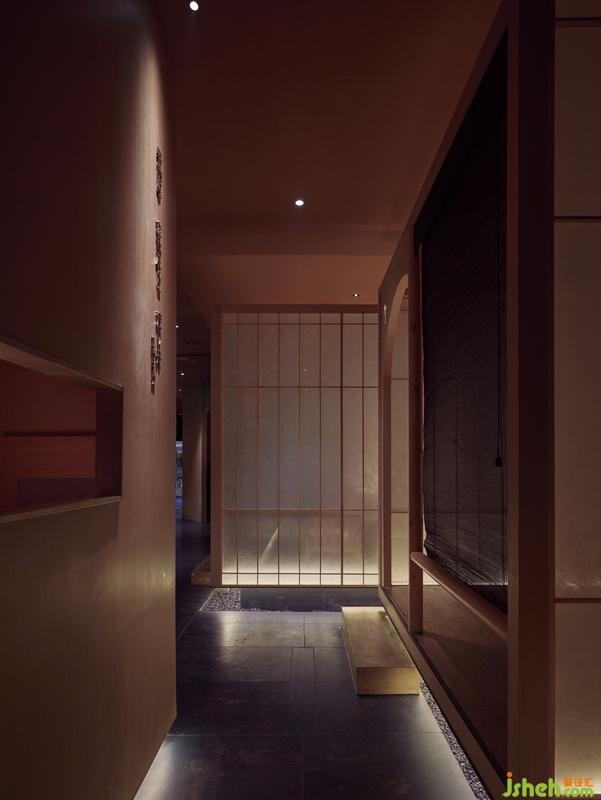 和室是日本傳統(tǒng)建筑,風格簡單,但細部設計卻是殫精竭慮。簡單與復雜的對立統(tǒng)一,在虛飾繁雜的都市生活中,創(chuàng)造天地自然。故和室被稱為“隱居之所”,或“城市中的山野隱居處”,是通往冥想之路的路口。在項目中,充分發(fā)揮了和室建筑灰空間的對話作用,也制造了一些戲劇感的細節(jié)。