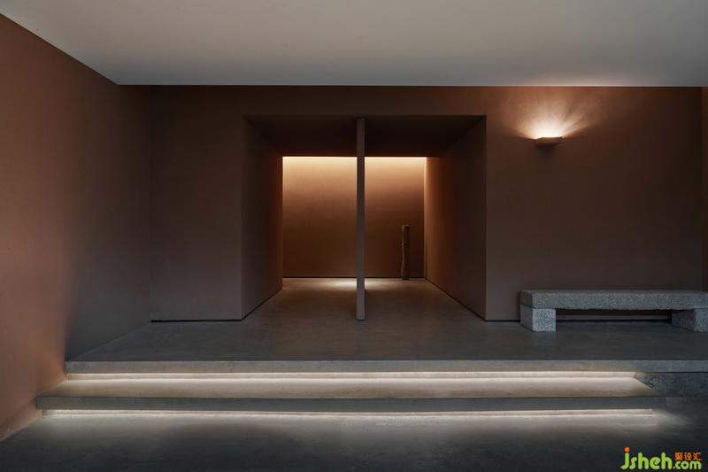 娛樂空間畫風(fēng)突變,空間中的赤粉色,也是熱鬧中的靜寂。它悄然融入了灰與白之間,游移在光與影之間,在高雅中摻雜著曖昧,曖昧中摻雜著全然的放松,樸素靜美,耐人尋味。